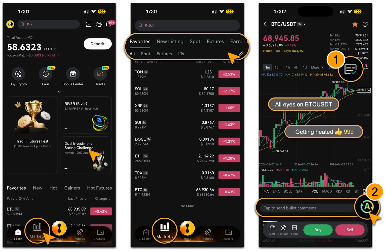 LBank Bullet Comments helps you follow market interaction in real time, join discussions more easily, and improve your experience through translation and like features.
